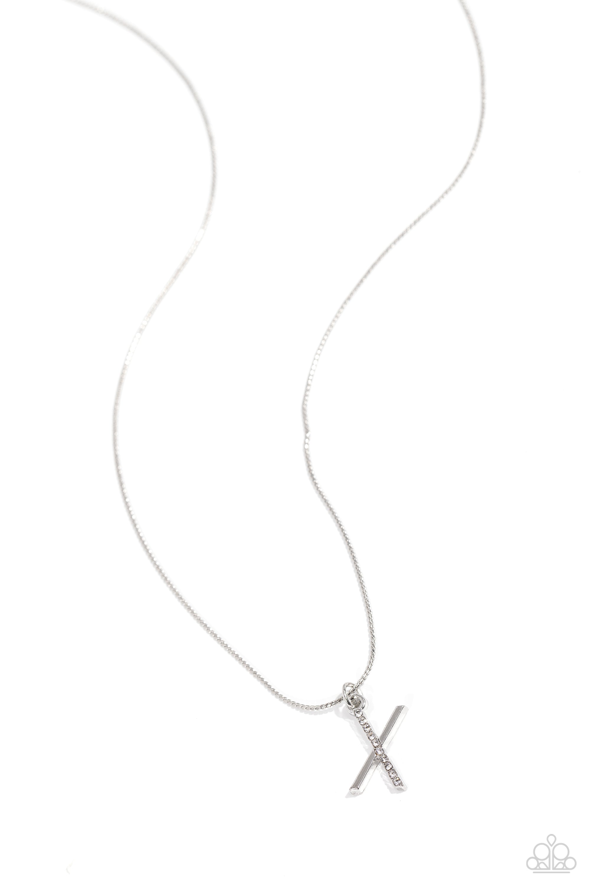 Letter of the Law - X - White Rhinestone Silver Initial Paparazzi Short Necklace