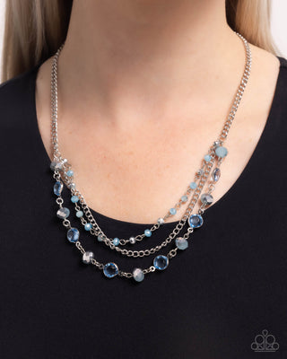Bouquet Ballad - Blue - Bead and Iridescent Rhinestone Flower Paparazzi Short Necklace