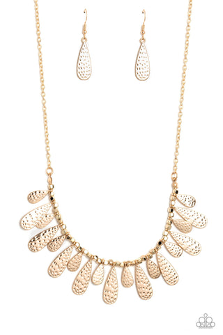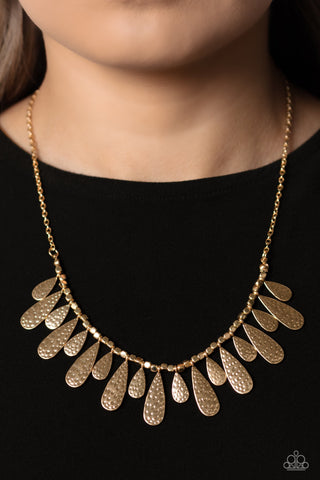 Shimmering High Society - Brown - Bead and Rhinestone Gold Paparazzi Short Necklace