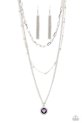 Burning Love - Black - Painted Purple Heart inside Sun Tiered Paparazzi Short Necklace