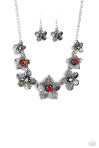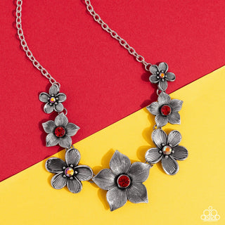 Free FLORAL - Red - Iridescent Rhinestone Center Flower Paparazzi Short Necklace