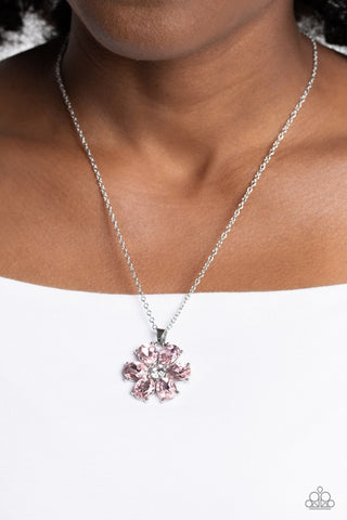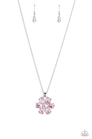 Fancy Flower Girl - Pink - Large Rhinestone Flower Pendant Paparazzi Short Necklace