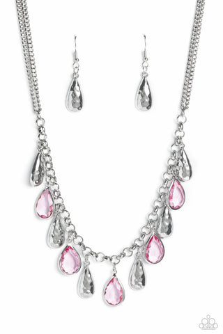 Emerald Energy - Multi - Neon Fram Pink Emerald Cut Gem Paparazzi Short Necklace