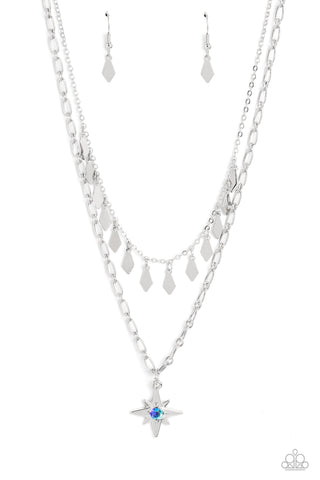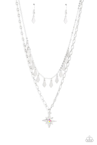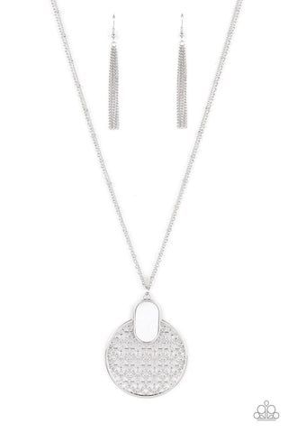 Prismatically Polished - White - Elongated Teardrop Gem Paparazzi Short Necklace