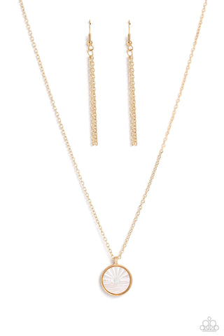 Seize the Sunset - Gold - Sun and Waves Embossed White Seashell Paparazzi Short Necklace