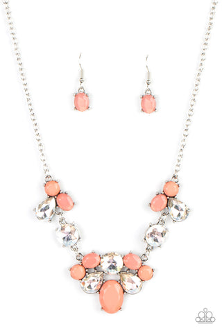 Affectionate Array - Orange - Bead and White Rhinestone Tiered Paparazzi Short Necklace