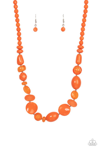 Dewy Disposition - Orange - Cat's Eye Stone and Bead Paparazzi Tiered Short Necklace