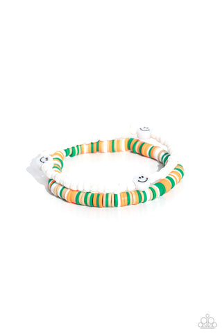 Sam EYE Am - Multi - Orange Rubber Disc Silver Bead Paparazzi Stretchy Bracelet