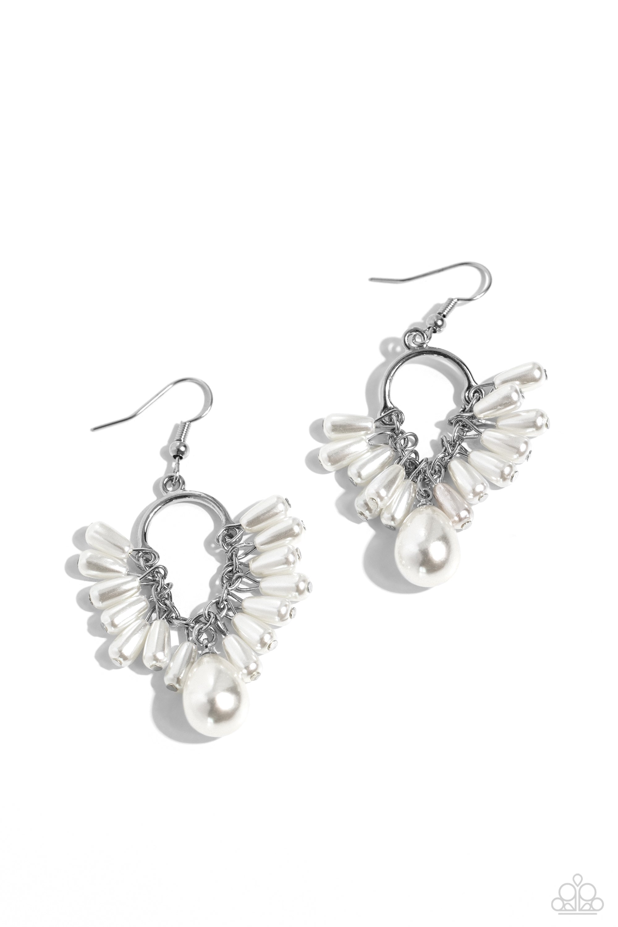Ahoy There! - White - Teardrop Pearl Paparazzi Fishhook Earrings