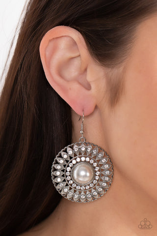 Combustible Couture - Black - Rhinestone Pearl Hoop Paparazzi Fishhook Earrings