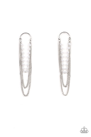 Glorified Glitz - White - Pearl and Rhinestone Blingy Paparazzi Fishhook Earrings