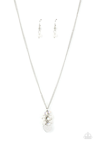 Doubled Down on Dazzle - White - Pearl and Rhinestone Paparazzi Ear Crawler Earrings