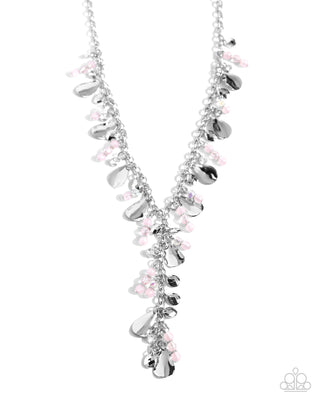 Twirling Triad - Pink - Opalescent Gem Oversized Silver Flower Paparazzi Short Necklace