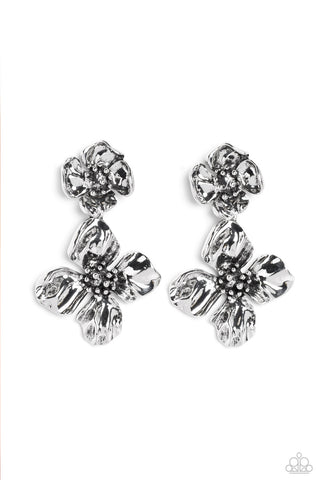Glimmering Gardens - White - Acrylic and Silver Abstract Flower Paparazzi Post Earrings