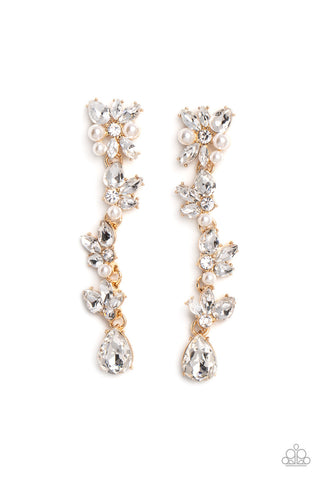 Stellar Showcase - White - Marquise Cut Rhinestone Pearl Center Paparazzi Post Earrings