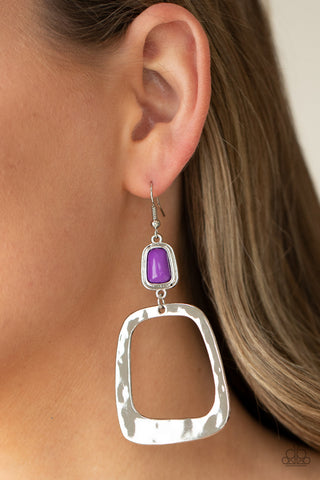 Galapagos Garden Party - Purple - Floral Wooden Hoop Paparazzi Fishhook Earrings