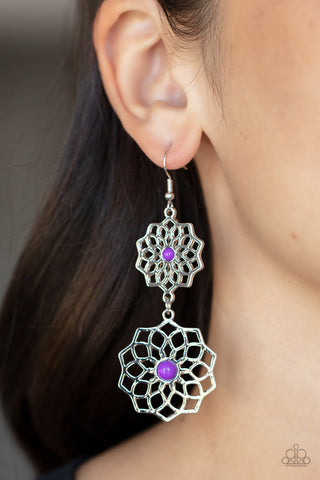 Terrace Trinket - Purple - Rhinestone Daisy Flower Teardrop Paparazzi Earrings