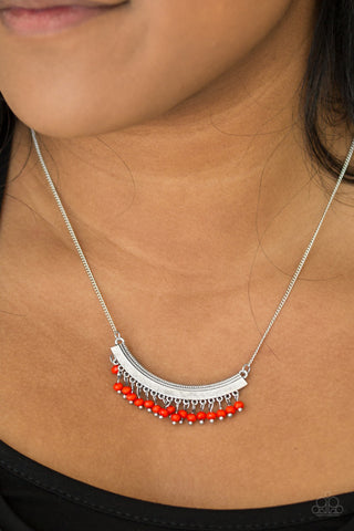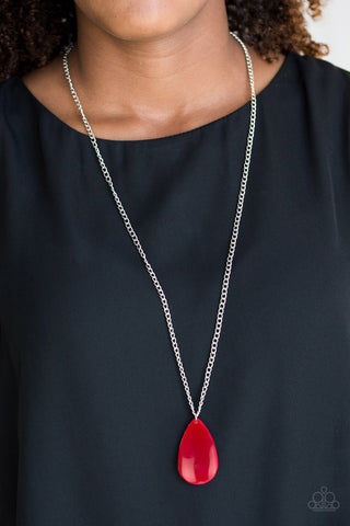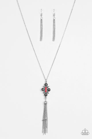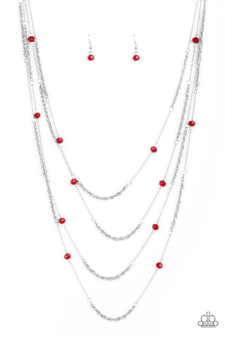 Classic Casanova - Red - Rhinestone Silver Filigree Heart Paparazzi Long Necklace