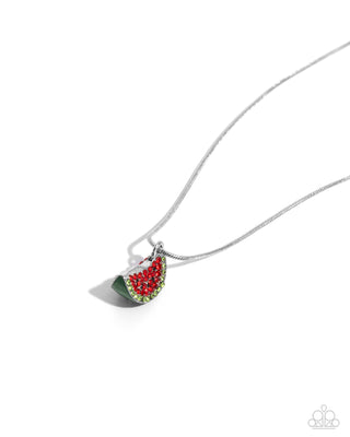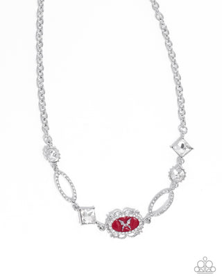 Victorian Influence - Red - and Pink Rhinestone Silver Bow Paparazzi Short Necklace