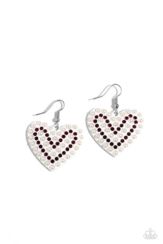 Admirable Assortment - Red - Rhinestone and Pearl "LOVE" Paparazzi Post Earrings