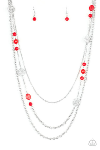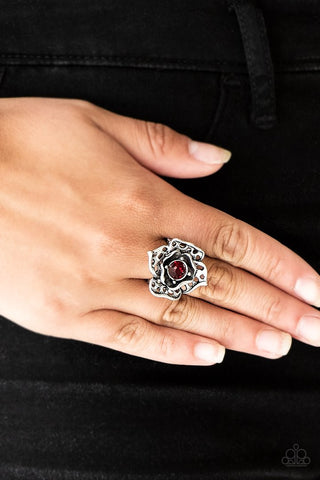 Follow the Wildflowers - Red - Stamped Leather Flower Paparazzi Snap Wrap Bracelet
