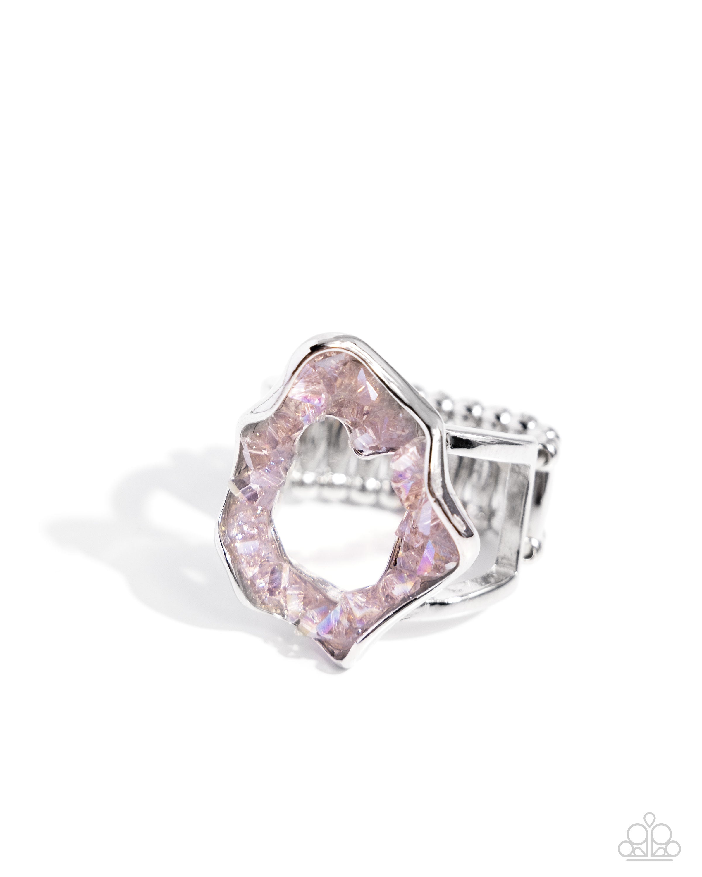 Featuring pink faux druzy crystals, an abstract silver frame forms into a geode-like centerpiece atop the finger for a naturally nuanced statement. Features a stretchy band for a flexible fit.