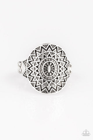 Center Target - Silver - Oversized Oval Paparazzi Ring - February 2020 Sunset Sightings
