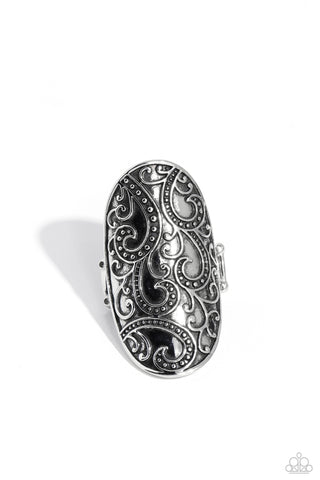 Elite Enchantment - White - Iridescent Pearl and Rhinestone Beaded Center Paparazzi Ring
