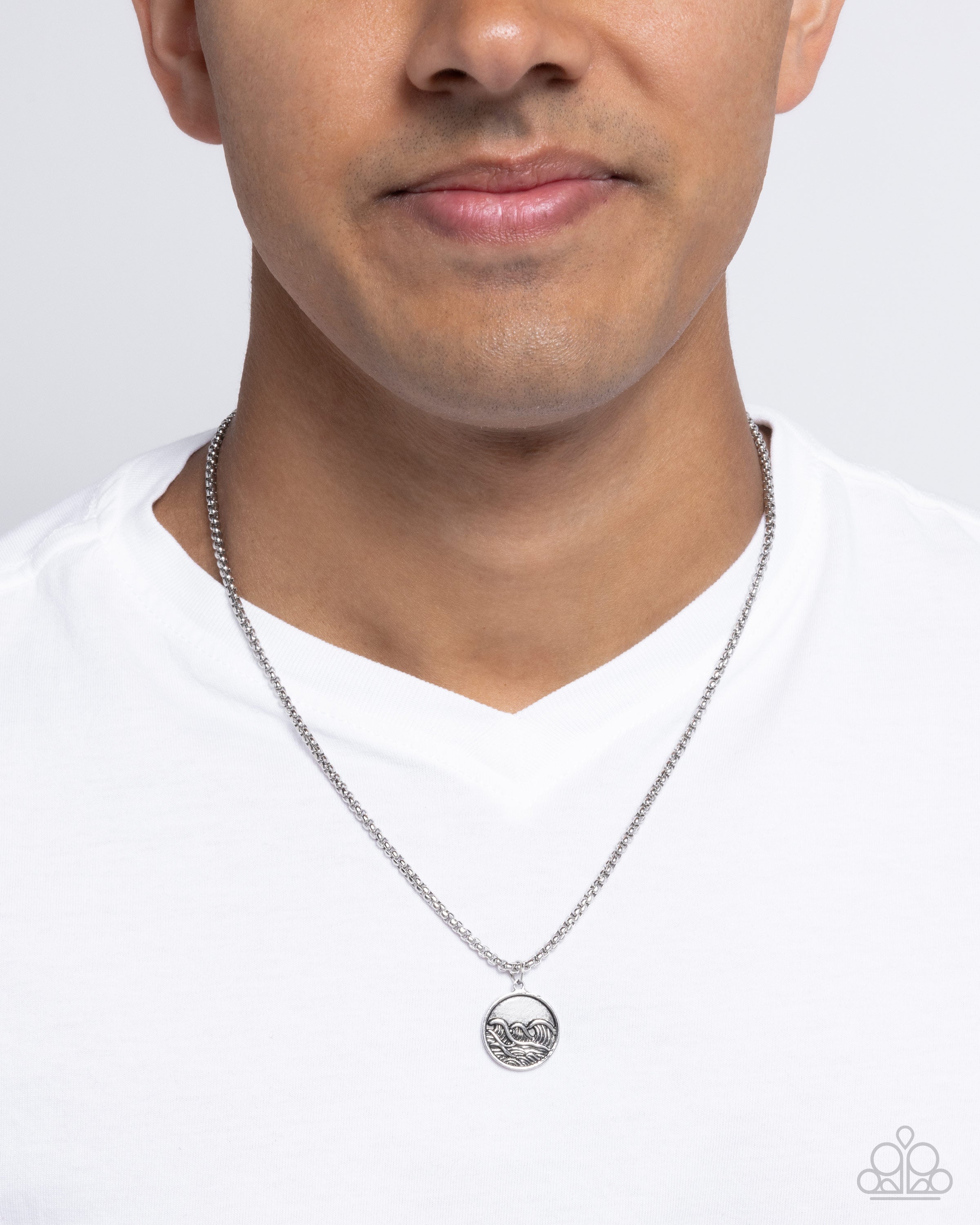 Gliding along a rounded silver box chain, numerous silver waves crash and are embellished upon a silver disc pendant for an overwhelming, ocean-inspired display. Features an adjustable clasp closure.