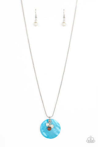 Beach House Harmony - Blue - Seashell Disc and White Pearl Paparazzi Short Necklace
