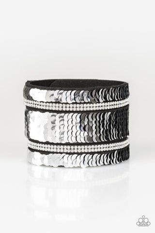MERMAID Service - Blue - and Silver Reversible Sequin Paparazzi Snap Wrap Bracelet