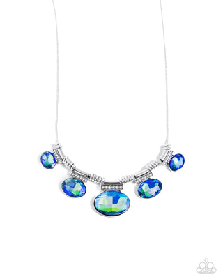 Gallery Glam - Blue - Circle, Teardrop, and Emerald-Cut Gem Paparazzi Short Necklace