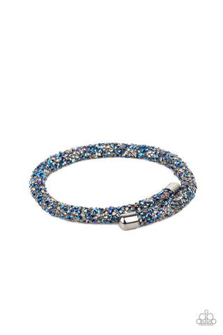 Roll Out The Glitz - Multi - Blue and Smoky Rhinestone Paparazzi Coil Bracelet