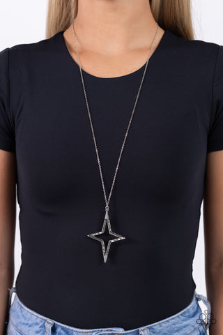 Stellar Showtime - Black - Hematite Gem Gunmetal Star Frame Paparazzi Long Necklace