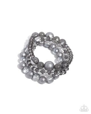 Shattered Stack - Silver - Clear, Cloudy, and Glittery Bead Paparazzi Stretchy Bracelet