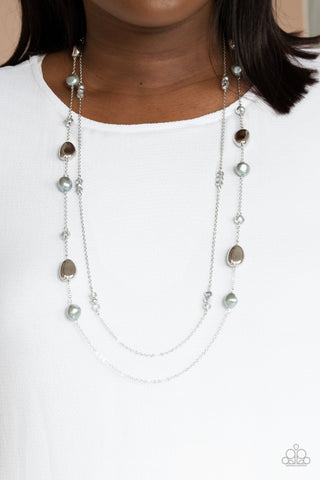 Wreathed in Wealth - Silver - Iridescent and Hematite Rhinestone Paparazzi Long Necklace