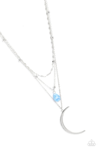 Lunar Landslide - Blue - Teardrop Bead Silver Tiered Moon Paparazzi Short Necklace