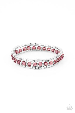 Mix and Mash - Purple - Square Crystal and Silver Cube Bead Paparazzi Stretchy Bracelet