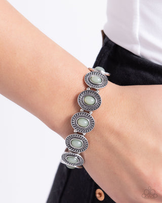 Hammered High - White - Glittery and Opalescent Bead Paparazzi Stretchy Bracelet