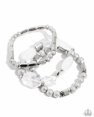 Lets Start at the FAIRY Beginning - Silver - Disc and Bead Paparazzi Stretchy Bracelet