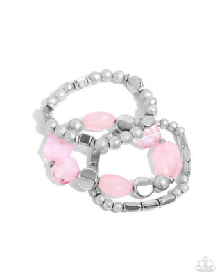 Pearl Protagonist - Pink - Faceted Shimmery Pearl and Bead Paparazzi Stretchy Bracelet