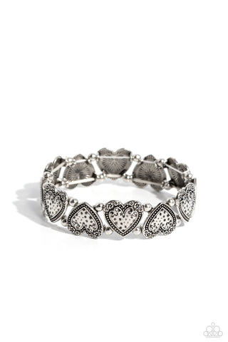 Hammered Headliner - Silver - Hematite Gem Hammered Paparazzi Stretchy Bracelet