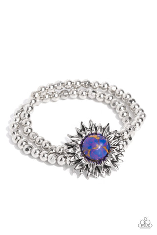 Malibu Model - Purple - Oil Spill Bead Flower Overlay Paparazzi Stretchy Bracelet