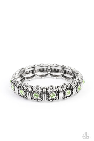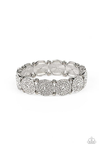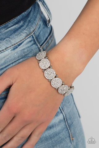 Palace Intrigue - White - Round Rhinestone Encrusted Paparazzi Stretchy Bracelet