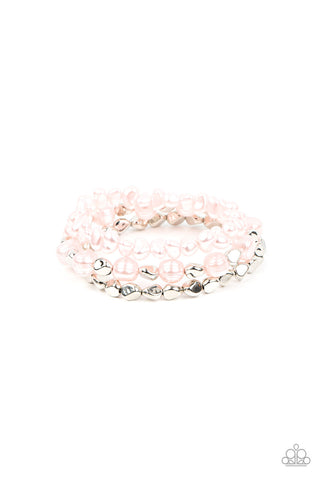 Tonal Takeover - Pink - Beads Pearls White Rhinestones Paparazzi Stretchy Bracelet