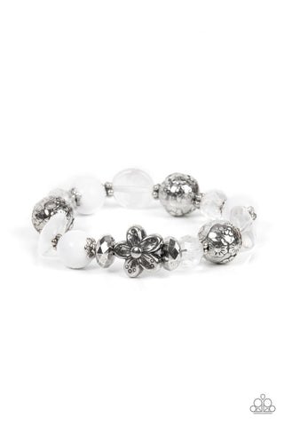 Badlands Botany - Yellow - Seed Bead Silver Flower Paparazzi Stretchy Bracelet
