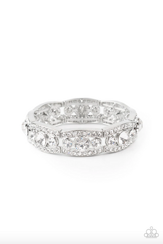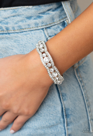 Mic Dropping Drama - Gold - White Rhinestone Bling Paparazzi Stretchy Bracelet