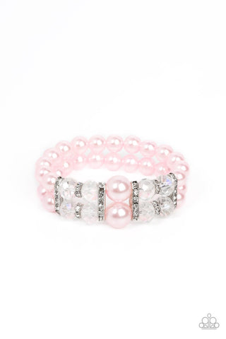 Timelessly Tea Party - Pink - Pearl Iridescent Bead Paparazzi Stretchy Bracelet