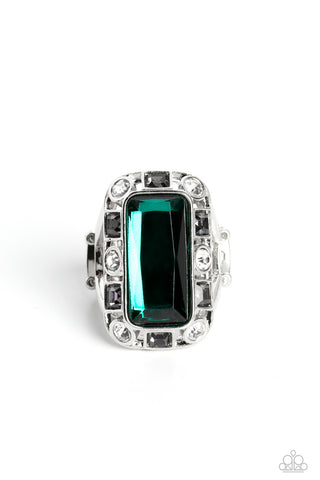 Pack Your SADDLEBAGS - Blue - Turquoise Stone Oversized Rectangular Stone Paparazzi Ring