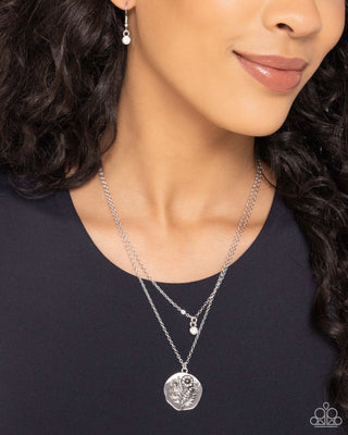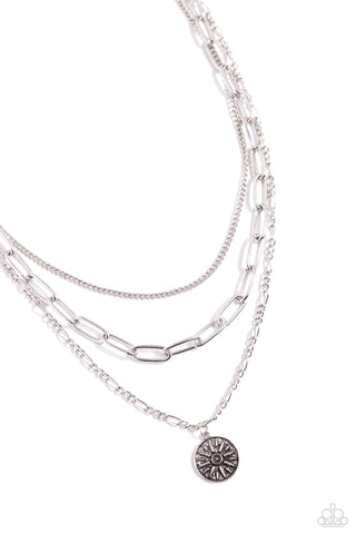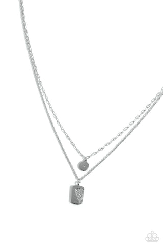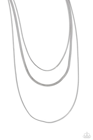 Key LAYER - Silver - Tiered Snake and Herringbone Chain Paparazzi Short Necklace